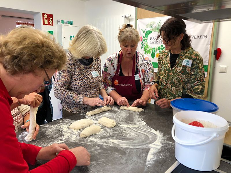 Mit Michael Hohla aus dem Innviertel stand am nächsten Tag ein weiterer namhafter Dozent am Redepult. Mit Blick auf Heilkunde und Brauchtum sprach er über österreichische und bayerische Pflanzennamen und deren Brauchtum. Kathrin Schumanns Apell, den Garten wieder mehr Natur sein zulassen, fand nach ihrem Fachvortrag „Heilpflanzen und ihre Inhaltsstoffe nutzen durch Gärtnern“ sehr viel Zuspruch. Die Qual der Wahl hatten die Kräuterbegeisterten bei den anschließenden Workshops, die von Referentinnen aus dem KräuterPädagogenVerein e.V. angeboten wurden: „Salben und Tinkturen“ mit Karin Müller, „Naturkosmetik“ mit Steffi Götz, „Brot backen für die eigene Veranstaltung“ unter Anleitung von Angela Marmor und „Doldengewächse“ mit Michaela Marx Egal, wie die Entscheidung fiel – am Ende waren alle begeistert und die Manuskripte wurden im Nachgang an alle Teilnehmer via Mail versandt. Insgesamt durfte man auf eine rundum gelungene Veranstaltung zurückblicken.