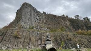 • Unterwegs Stopp bei Monoszlò im Kalibecken. Bestaunt und bestiegen wurde der 337 Meter hohe Hegyestű (Teil des UNESCO-Geopark Bakony-Balaton) mit seinen Basalt-Orgeln. Man blickt hier quasi in einen mittig aufgeschnittenen erstarrten Vulkan. Ein Blick auf die Geschichte dieses Ortes lohnt.