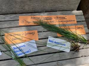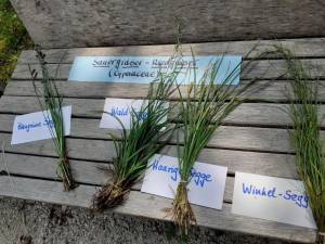 Hansjörg Hauser, Diplomagraringenieur und Hobbybotaniker, selbst Kräuterpädagoge, begeisterte die Teilnehmer/innen für Süßgräser, Sauergräser, Binsen und Hainsimsen.