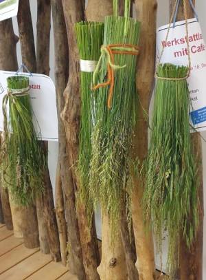 Im Gelände der Umweltstation, einem Hotspot der Bayerischen Artenvielfalt, wuchs das duftende Ruchgras neben dem Geländepionier Fiederzwenke. Stolz bestimmten die Teilnehmer mit Einschlaglupe und Bestimmungsbuch die Weiße Segge, ein Sauergras das vom einstiegen Auwald erzählte. Nicht schlecht staunten alle über Wiesenrispen, Rohrschwingel und das süß schmeckende „Ingenieursgras“, das Knaulgras! Und jetzt kennen alle auch die Flatterbinse, aus deren Mark man zu Weihnachten nun die Dochte selbst „herwuzeln“ kann. Der Kreativität freien Lauf lassen konnten alle zum Schluss bei der Gestaltung einer dekorativen Hängevase aus den gesammelten Gräsern.