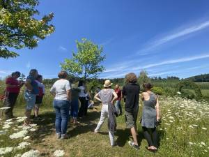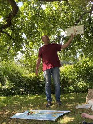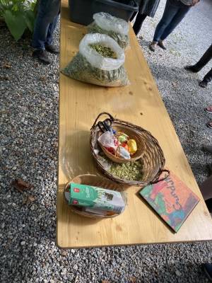 Besonderes Highlight war das gemeinsame Musizieren im malerischen und naturnah gestalteten Garten der Kräuterschule. Thomas Janscheck begleitete unsere bayerischen Lieder auf der Zither – ein stimmungsvoller Moment, der Natur, Musik und Gemeinschaft verband. Mit viel Humor und Scharfsinn untermalte Janscheck die Geschichten rund um die Natur und ihre kleinen Wunder und führte mit fachkundigem Wissen und vielen erprobten Praxisanregungen durch den Tag. Die Entdeckung des Regenwurms „Bavarikus“, das Gestalten der Baumgeister, die Geschichte vom Kartoffelkönig, die Goggoloribirn, der Kaisermantel und vieles mehr werden uns in Erinnerung bleiben.