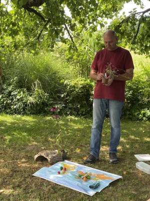 In dieser praxisnahen Fortbildung mit und von Thomas Janscheck / Dipl. Ing. (FH) Gartenbau, wurde uns anschaulich und praxisnah dargestellt, wie Naturerfahrungen Kinder stärken, erden und ihre Sinne beleben. In der inspirierenden Umgebung der Hallertauer Kräuterschule von Kräuterpädagogin und Vereinsmitglied Johanna Kiermeier im schönen Attenhofen erlebten wir, wie Naturpädagogik, Nachhaltigkeit und Gestaltungsfreude Hand in Hand gehen. Die Förderung der Kreativität, die Stärkung der selbstschöpferischen Kräfte und die ganzheitliche Wahrnehmungsfähigkeit waren wichtige Stichpunkte aus dem Vortrag „Über den Sinn des Gartelns mit Kindern“ des Referenten am Vormittag.